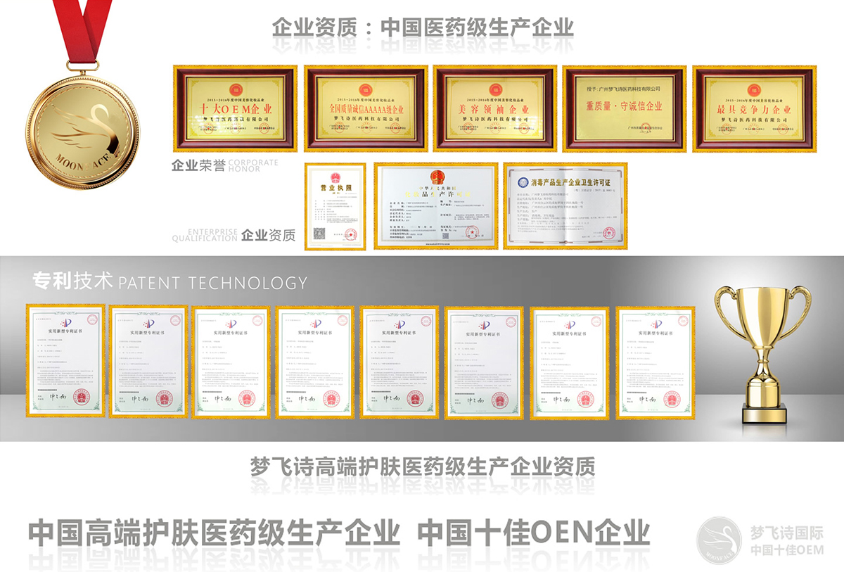 廣州夢飛詩醫(yī)藥科技有限公司(簡稱:夢飛詩)、占地2萬多平方米、是一家產(chǎn)品研發(fā)、生產(chǎn)、銷售、品牌策劃與市場營銷管理、國際學(xué)術(shù)交流為一體的大型股份企業(yè)、專業(yè)OEM/ODM/OBM為國內(nèi)外客戶打造護膚高端品牌、發(fā)展至今、擁有中國個人護理品最完整、最豐富的產(chǎn)品品類、產(chǎn)品覆蓋日化線、專業(yè)線、電子商務(wù)、微商、電視購物、直銷等主流渠道、品牌客戶超過6000個,成就中國高端護膚品類研發(fā)、加工第一平臺!